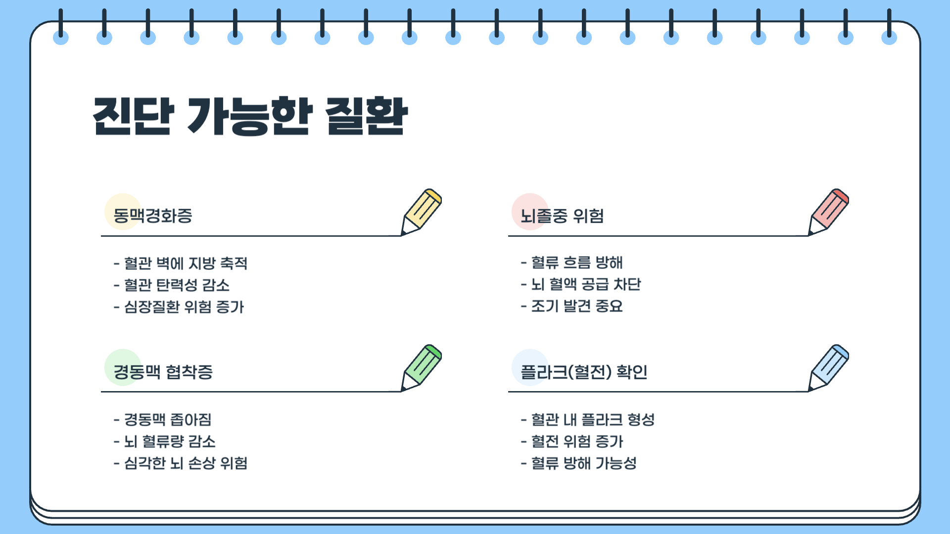 - 혈관 질환을 조기에 진단하고 예방할 수 있습니다.
