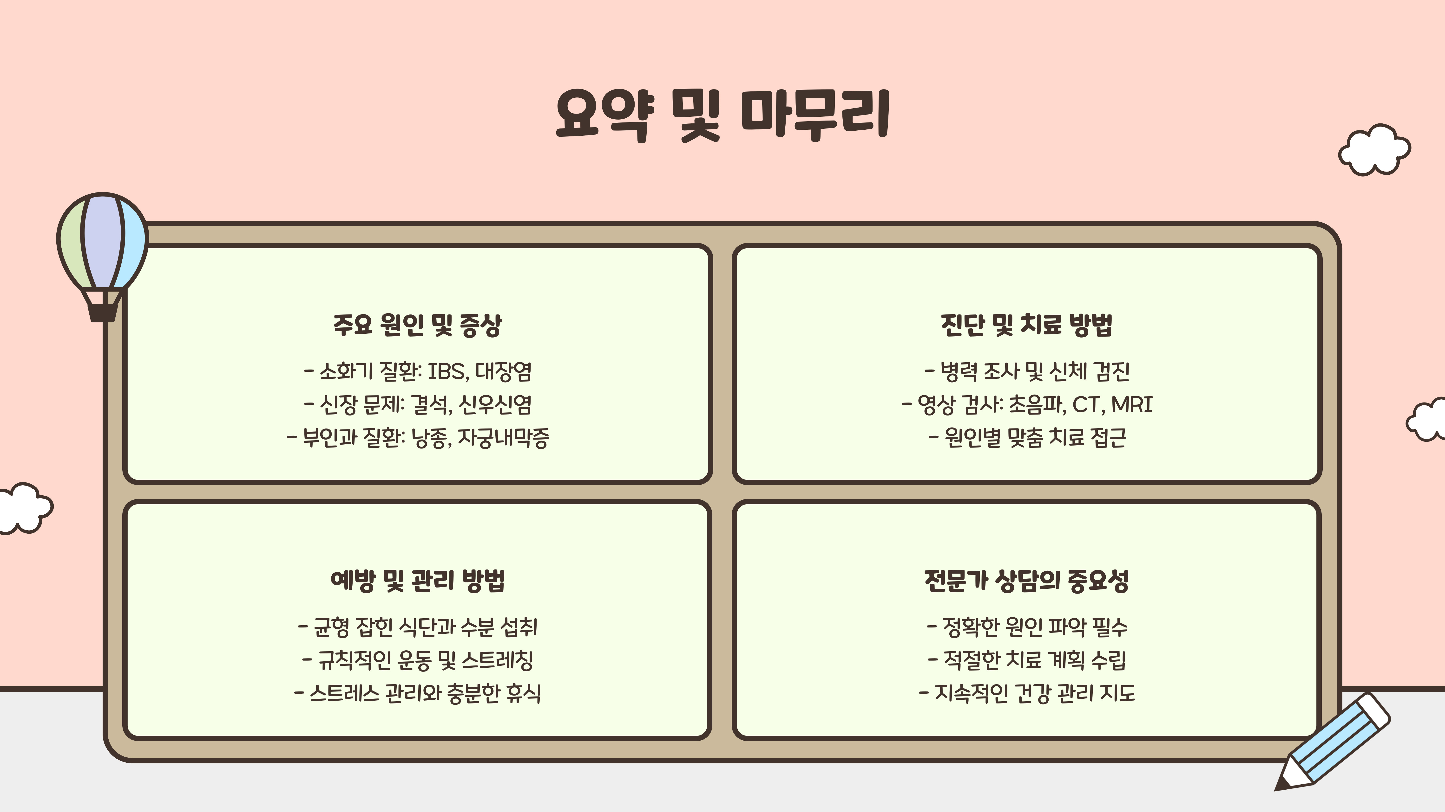 결론 – 왼쪽 아랫배 통증, 가볍게 넘기지 마세요!