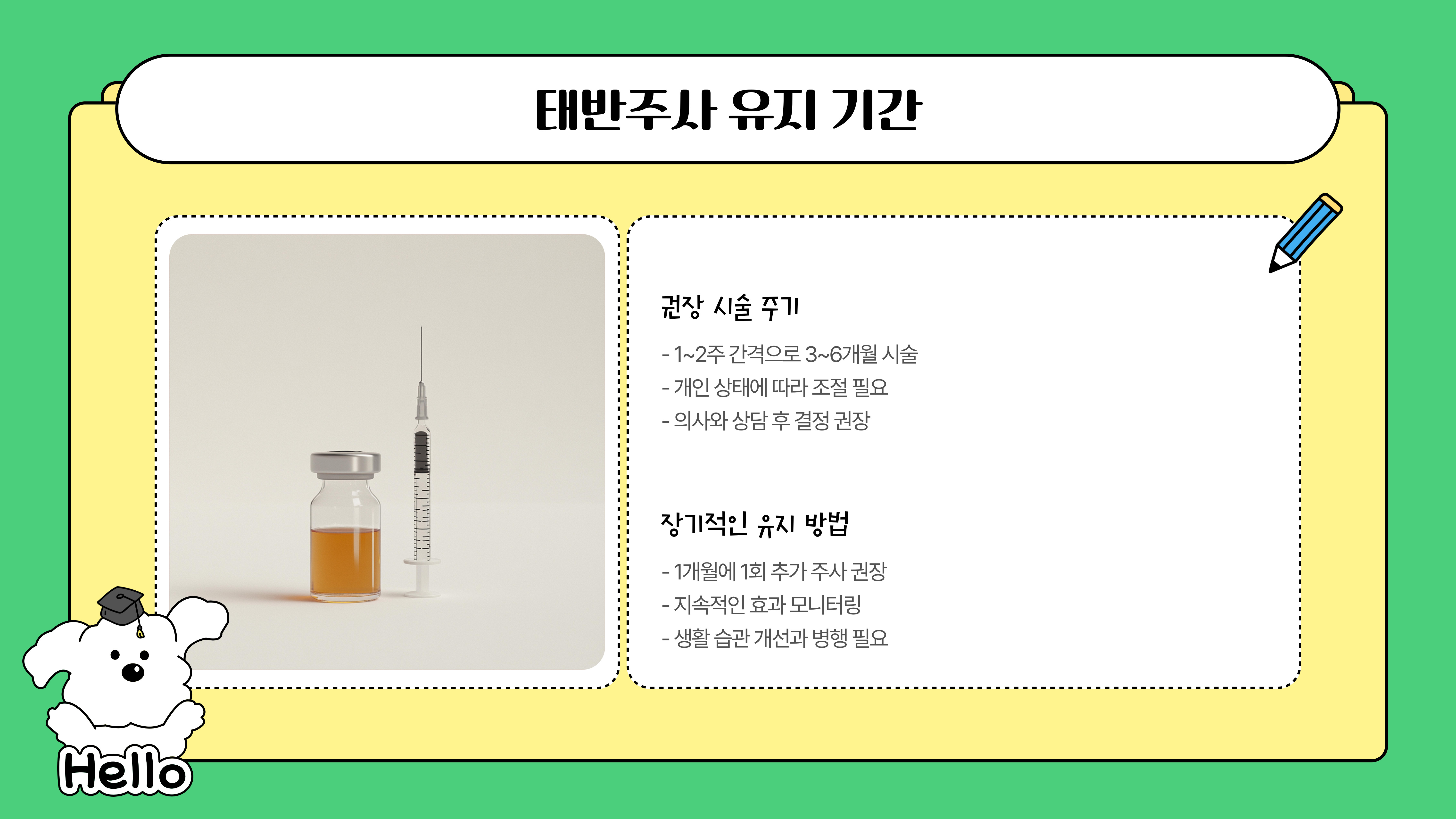 - 장기적인 유지 효과를 원한다면 1개월에 1회 정도 추가 주사 권장