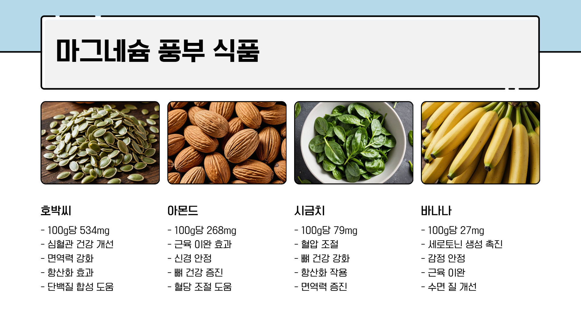 음식 마그네슘 함량(100g당) 기능 및 효과